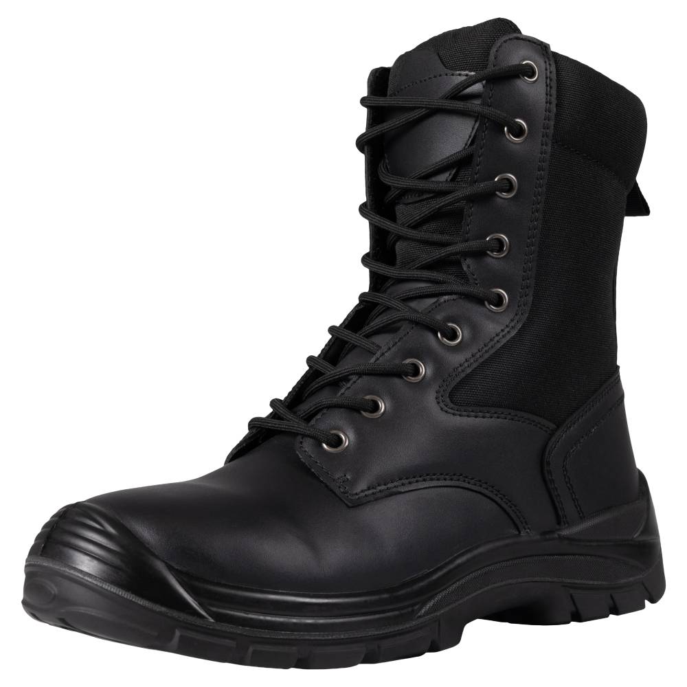 Realizați din piele naturală de bovină hidrofobizată, bocancii asigură o bună protecție împotriva umezelii și o rezistență crescută la uzură, fiind potriviți pentru purtare îndelungată, atât în interior, cât și în exterior. Textura pielii conferă un aspect robust, profesional, specific bocancilor militari și tactici.