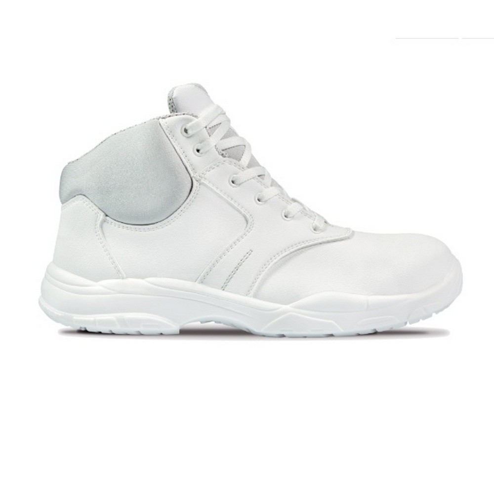 Bocancii de protectie sunt confectionati din microfibra DRY-WHITE, hidrofobizata si material Lycra. Captuseala bocancilor este din material textil perforat, rezistent la abraziune, asigurand aerisirea piciorului. Bombeul este nemetalic din material compozit, rezistent la soc 200J si compresiune.