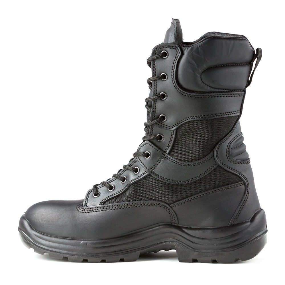 Protecție intransigentă: Cu Fețele din piele box hidrofobizată și material tip CORDURA, acești bocanci sunt construiți pentru a face față celor mai exigente cerințe. Rezistența lor la apă este asigurată de membrana impermeabilă, iar talpa din poliuretan dublă densitate oferă protecție anti-derapantă, anti-statică și rezistență la abraziune și hidrocarburi.