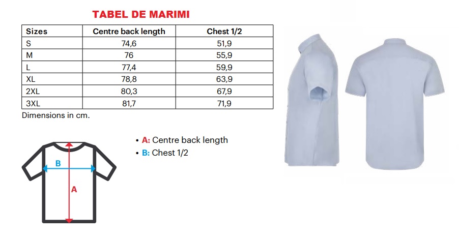 Camasa barbati Stretch cu maneci scurte, densitate 115gr/mp, 405016S Velilla