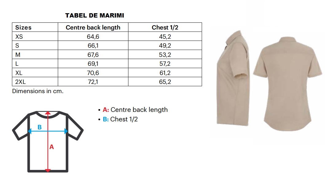 Adauga un plus de stil si rafinament garderobei tale profesionale cu aceasta camasa dama stretch cu maneci scurte, confectionata dintr-un material elastic poplin de calitate superioara – 67% bumbac, 29% poliester si 4% elastan – cu o densitate de 115 g/m², perfecta pentru zilele active.