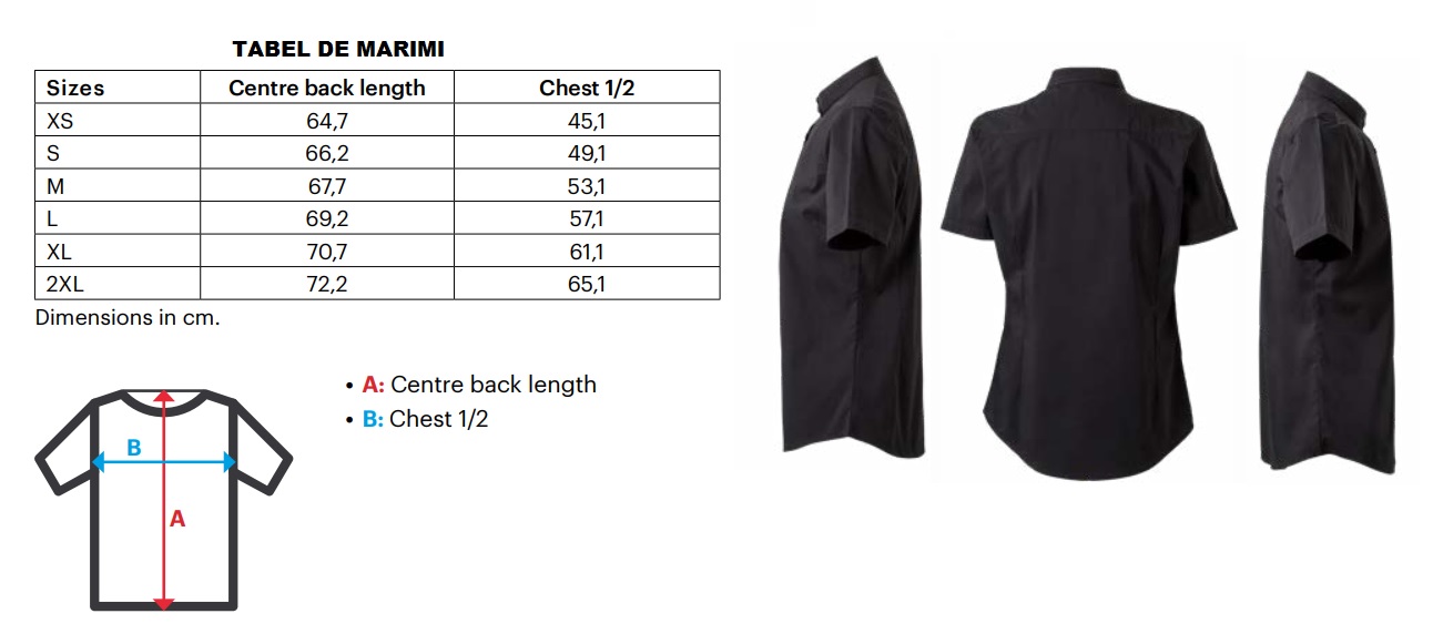 Camasa dama tip tunica cu maneci scurte, densitate 115gr/mp, Sleeve stretch 405014S Velilla