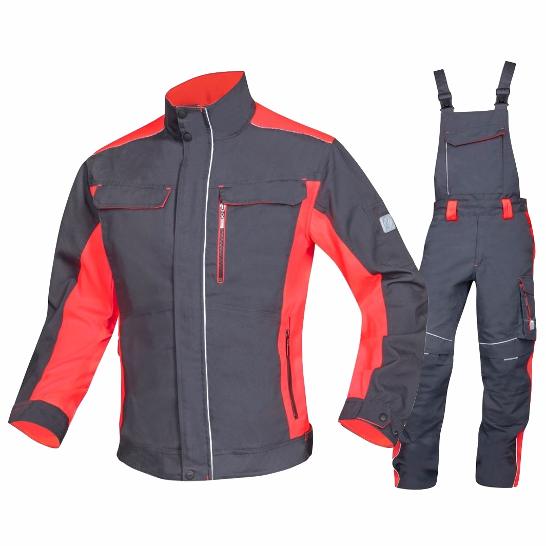 Costum salopeta cu pieptar Neon gri/rosu H6403/H6405 Ardon