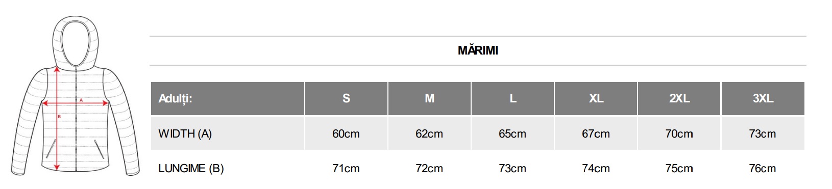 - Manșete elastice - protecție împotriva curenților de aer rece;