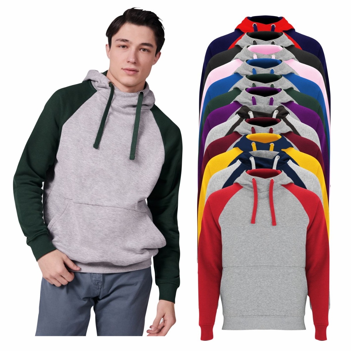 Construcția cu mânecă raglan în culoare contrastantă nu doar că oferă un aspect modern, ci și libertate de mișcare îmbunătățită. Buzunarul tip marsupiu este ideal pentru a-ți păstra la îndemână obiectele esențiale sau pentru a-ți încălzi mâinile în zilele răcoroase.