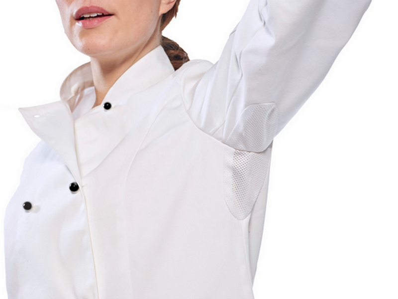 Caracteristicile inteligente ale acestei jachete sunt proiectate special pentru a-ți asigura o experiență culinară plăcută și confortabilă. Cu orificii de aerisire laterale și orificii de aerisire la manșete, vei simți un flux optim de aer care te menține răcoroasă și relaxată pe tot parcursul zilei. Plasa aerisită MeshAir la subsuori contribuie la îmbunătățirea circulației aerului și menține senzația de prospețime.