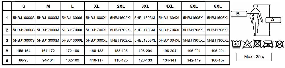 | 2XL | 188-196 | 118-125 |
