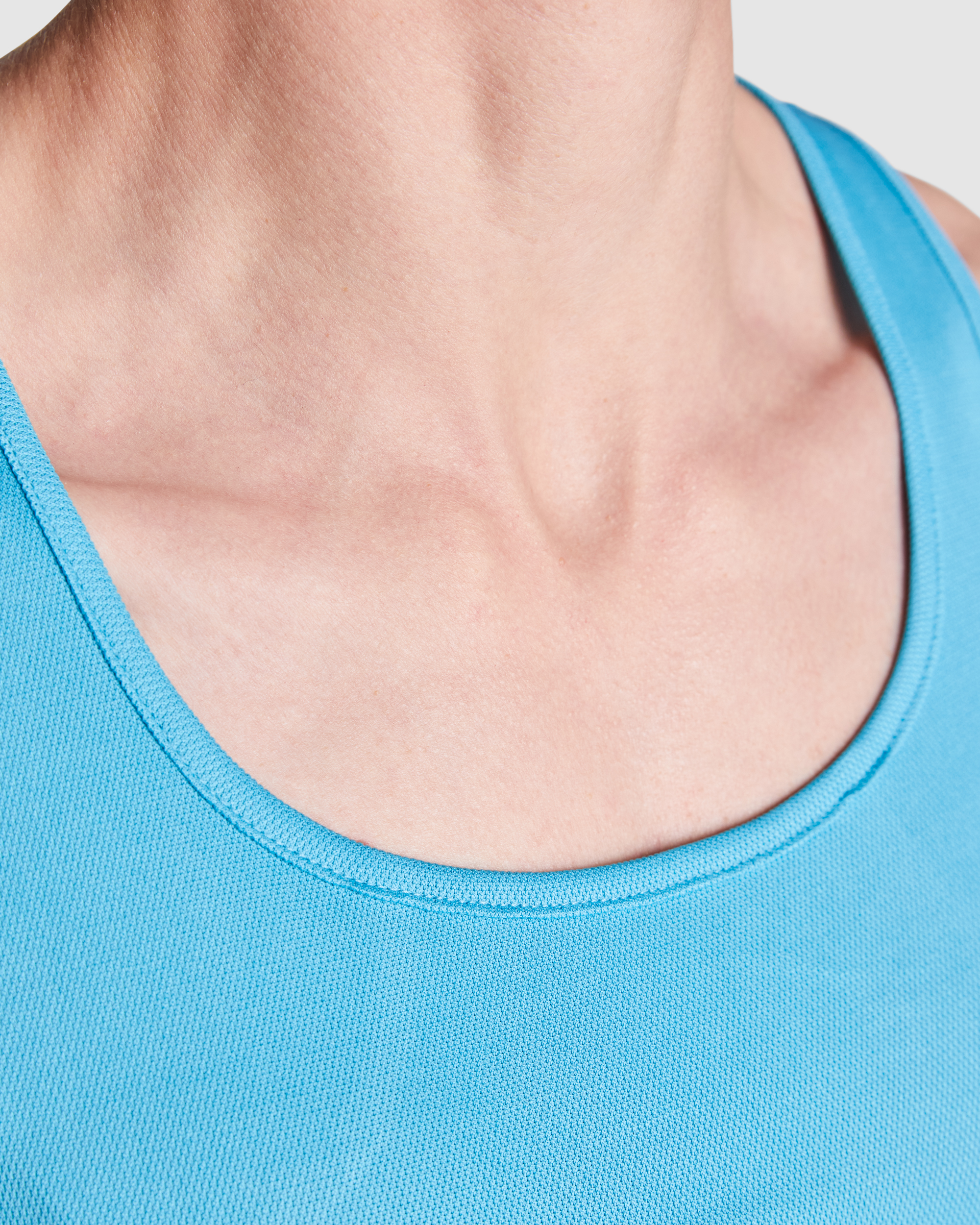 Designul distinctiv cu spate tip inotator ofera nu doar un aspect modern, ci si o ventilatie optima, permitand corpului sa respire in timpul exercitiilor fizice. Garnitura lata si rasucita din jurul decolteului si a rascroielii manecii adauga un plus de rafinament si stabilitate, asigurand confortul pe tot parcursul zilei.