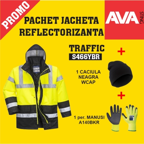 Pachet PROMO Jacheta iarna reflectorizanta TRAFFIC CONTRAST S466YBR + manusa iarna THERMAL GRIP A140BKR + caciula neagra iarna WCAP