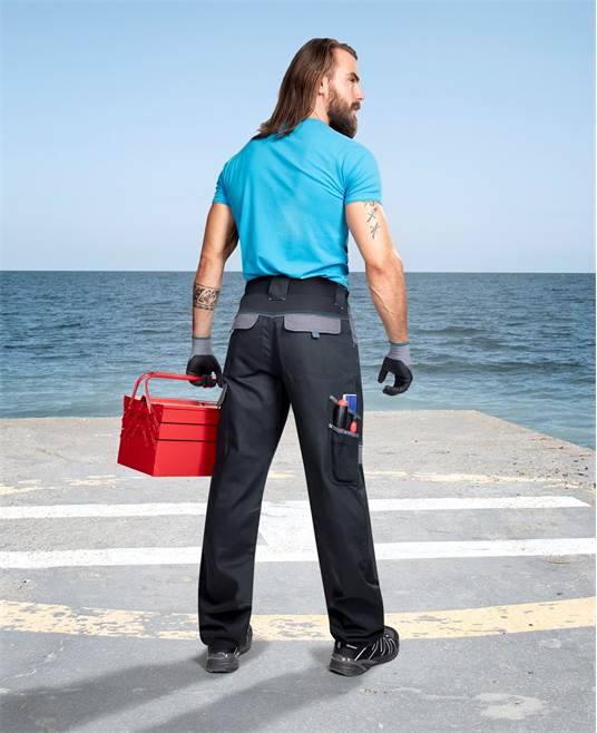 Cu o croială sportivă care se ridică până în talie, acești pantaloni au fost concepuți pentru a oferi muncitorilor o combinație perfectă între design și funcționalitate. Materialul lor de înaltă calitate, realizat din bumbac 100%, greutate 260gr/mp îndepărtează eficient umiditatea de pe corp, asigurându-vă că veți rămâne confortabil și uscat pe tot parcursul zilei. Mai mult, densitatea materialului face ca acești pantaloni să fie extrem de rezistenți la deteriorare, oferindu-vă astfel o investiție pe termen lung.