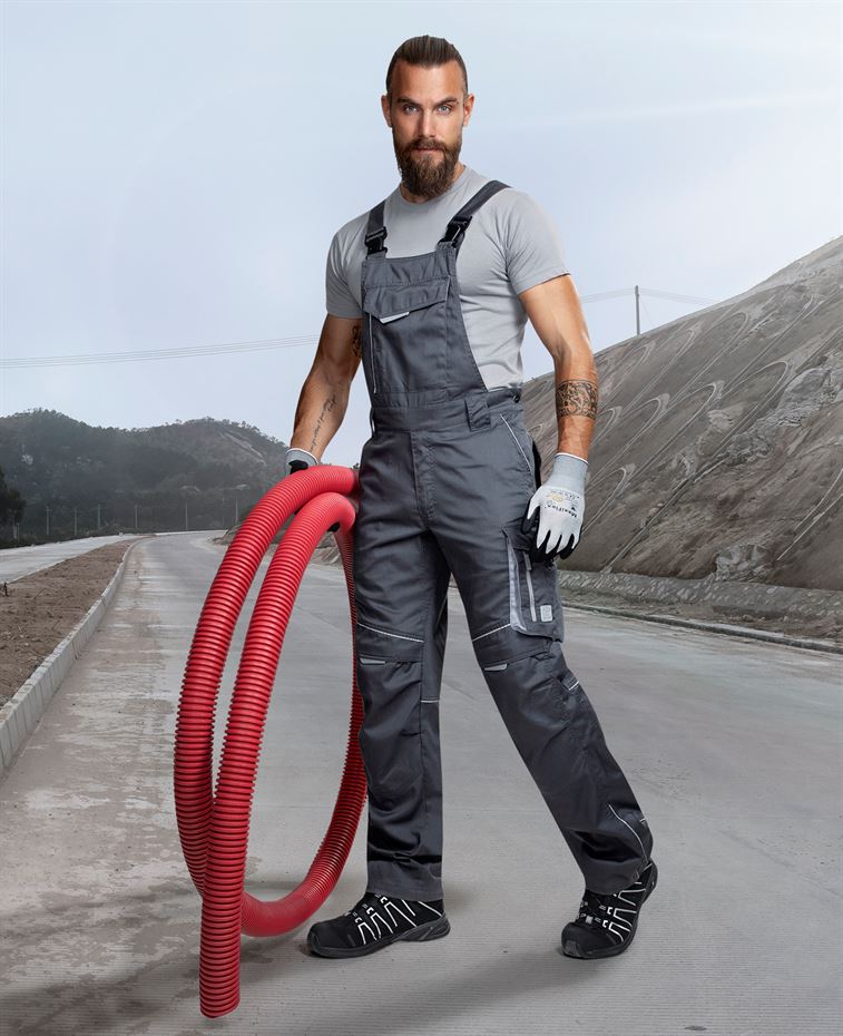 Experimentează confortul, funcționalitatea și durabilitatea inegalabilă cu pantalonii de lucru cu pieptar Summer gri închis H6102 Ardon.