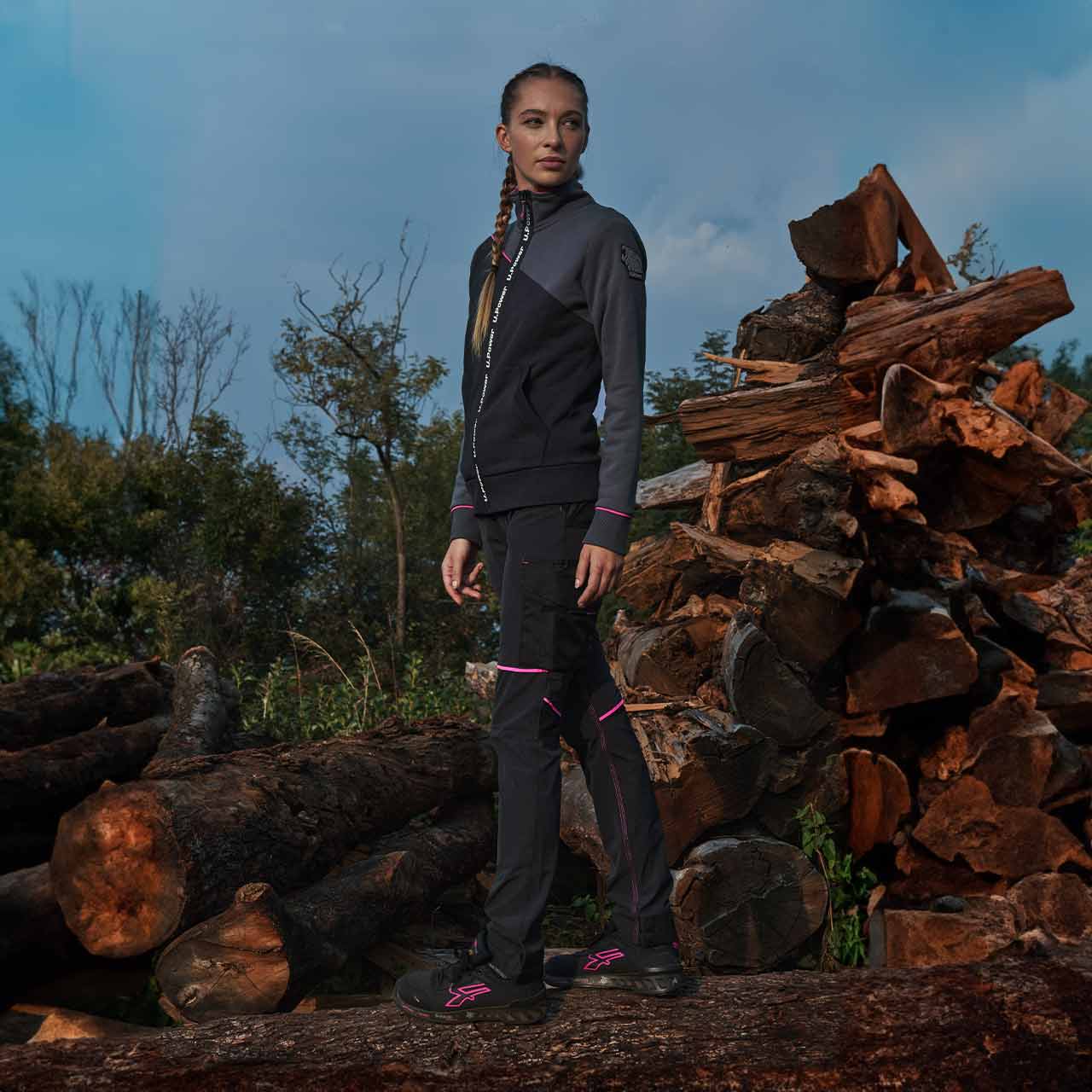 Design sport, feminin – exterior din nailon ultra-respirabil, cu inserții laterale roz contrastante, care adaugă un plus de stil în orice mediu de lucru.