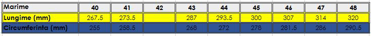 TABEL MARIMI PANTOFI PROTECTIE NEW-NILO S1P 1A82 SRC COFRA