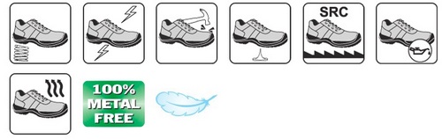 Pantofii sunt confectionati din splat de bovina. Captuseala este compusa din material textil perforat, rezistent la abraziune ce asigura respiratia piciorului. Bombeul pantofilor este nemetalic din material compozit, rezistent la soc 200J si compresiune. Talpa este injectata din poliuretan dubla densitate, bicolora, antistatica, antiderapanta, cu rezistenta la abraziune si hidrocarburi.