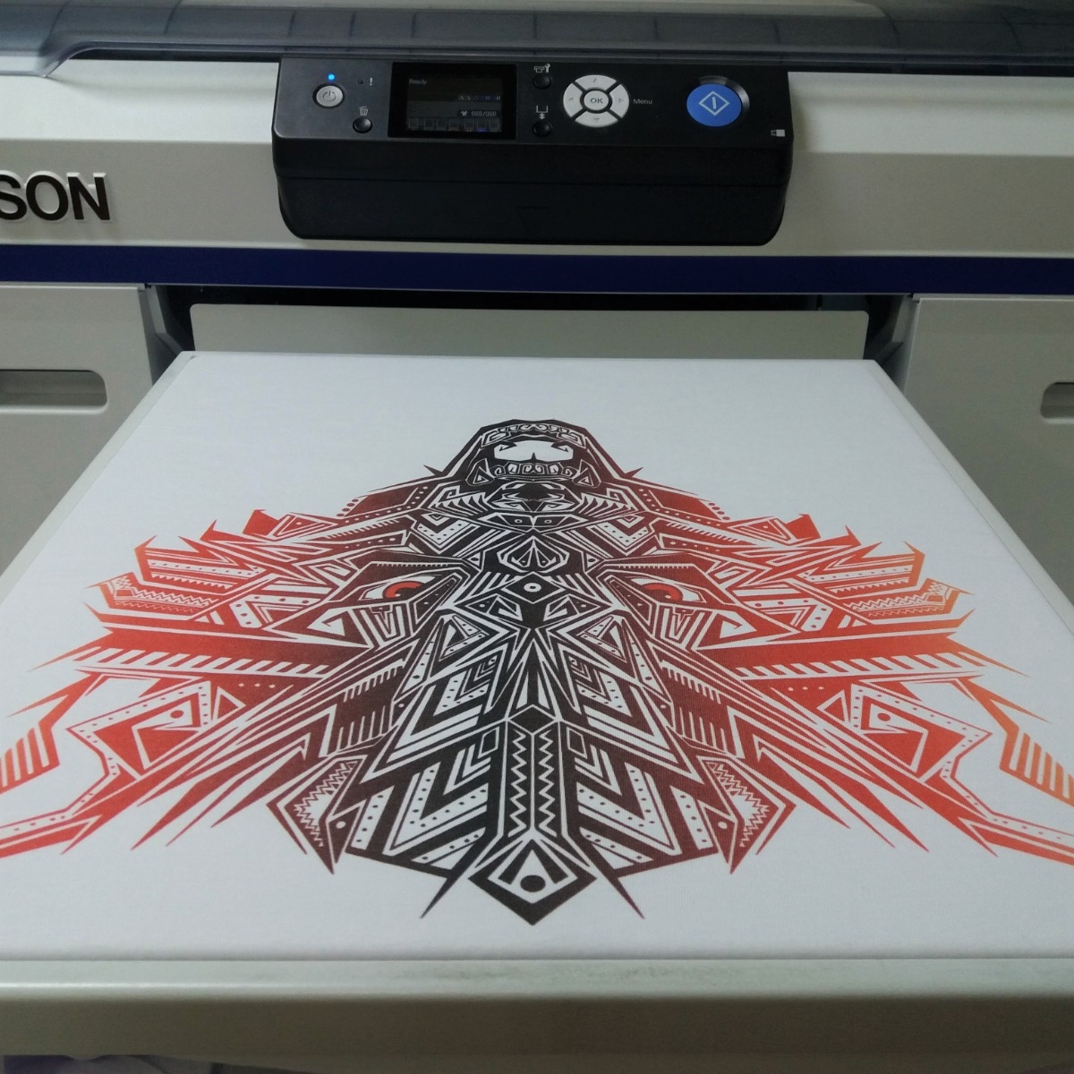 - folosita pentru tricouri albe, negre sau colorate. Tricourile inchise la culoare necesita un strat de primer si vopsea alba.