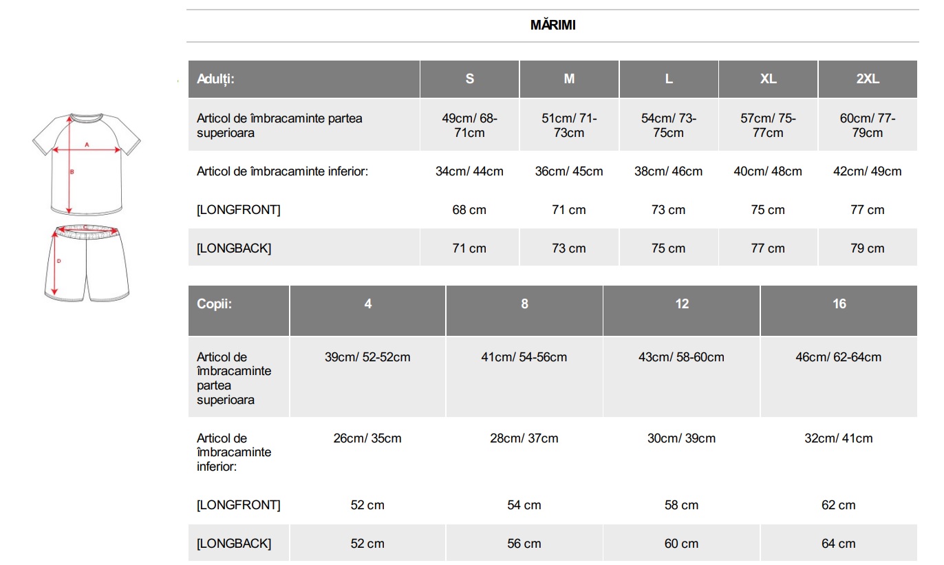 SET echipament sportiv barbati/copii tricou + pantalon scurt poliester 140 grame BOCA 0346 ROLY
