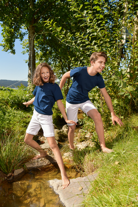 Cu cusăturile laterale și tivul îngust al gulerului confecționat din material raiat 1:1, cu adaos de 5% elastan, acest tricou se mulează perfect pe corpul copilului, oferind o siluetă impecabilă. Pentru un plus de durabilitate, la nivelul umerilor tricoul beneficiază de o cusătură de întărire, astfel încât să reziste în timp.