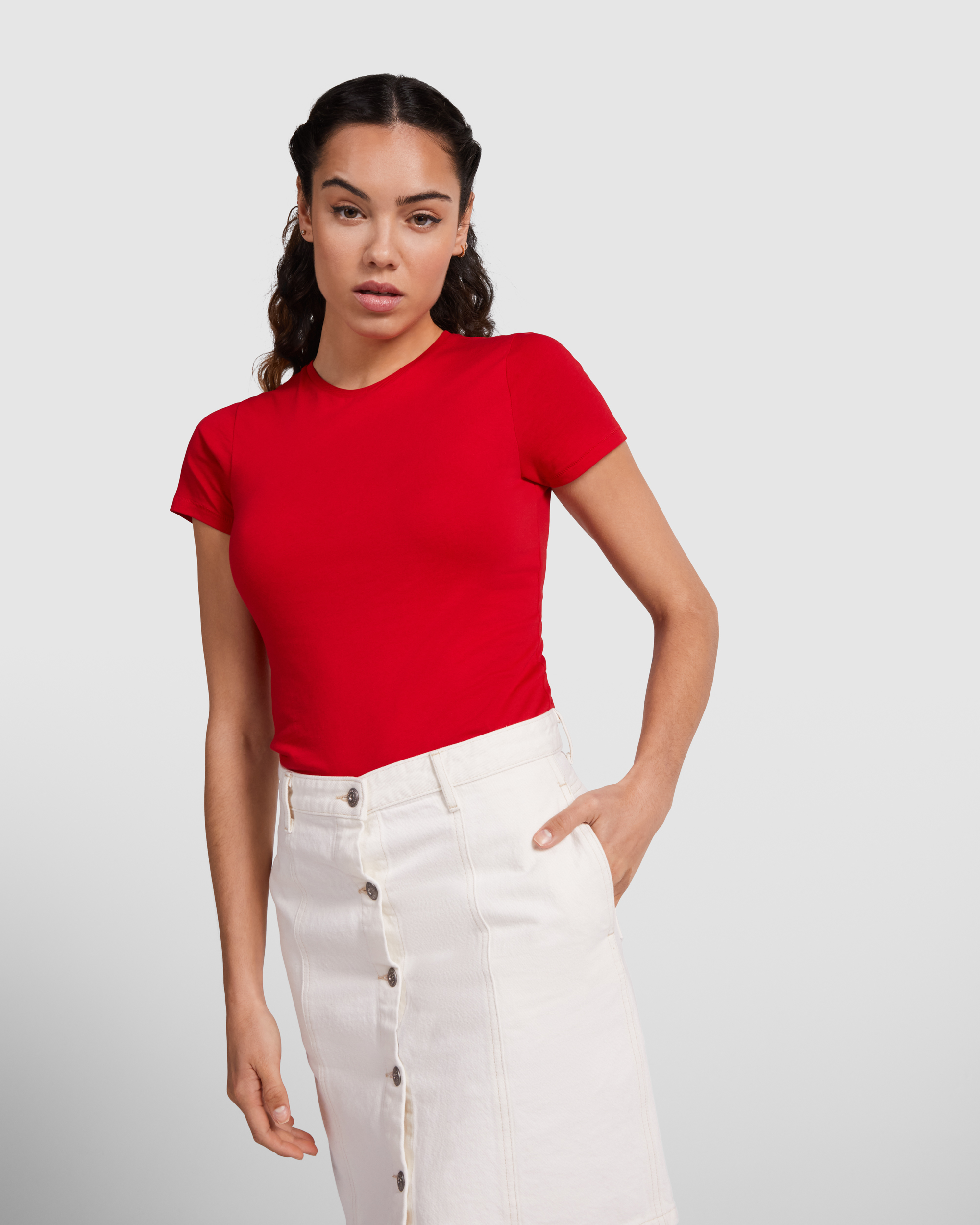 Croiala tubulara cambrata pune in valoare silueta feminina, oferind un aspect flatant si modern. Maneca scurta este ideala pentru zilele calduroase sau ca baza pentru layering in sezonul rece. Gulerul rotund cu Rib 1x1 asigura o potrivire confortabila in zona gatului, pastrandu-si forma impecabila chiar si dupa multiple spalari.
