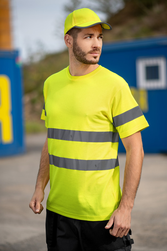 Material: Interlock pique, 55 % bumbac, 45 % polyester, benzi reflectorizante 3M;175 g/m²