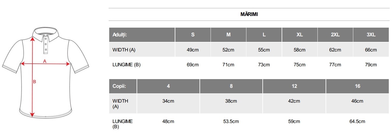 Disponibil si in varianta pentru copii - perfect pentru uniforme de familie sau echipe.