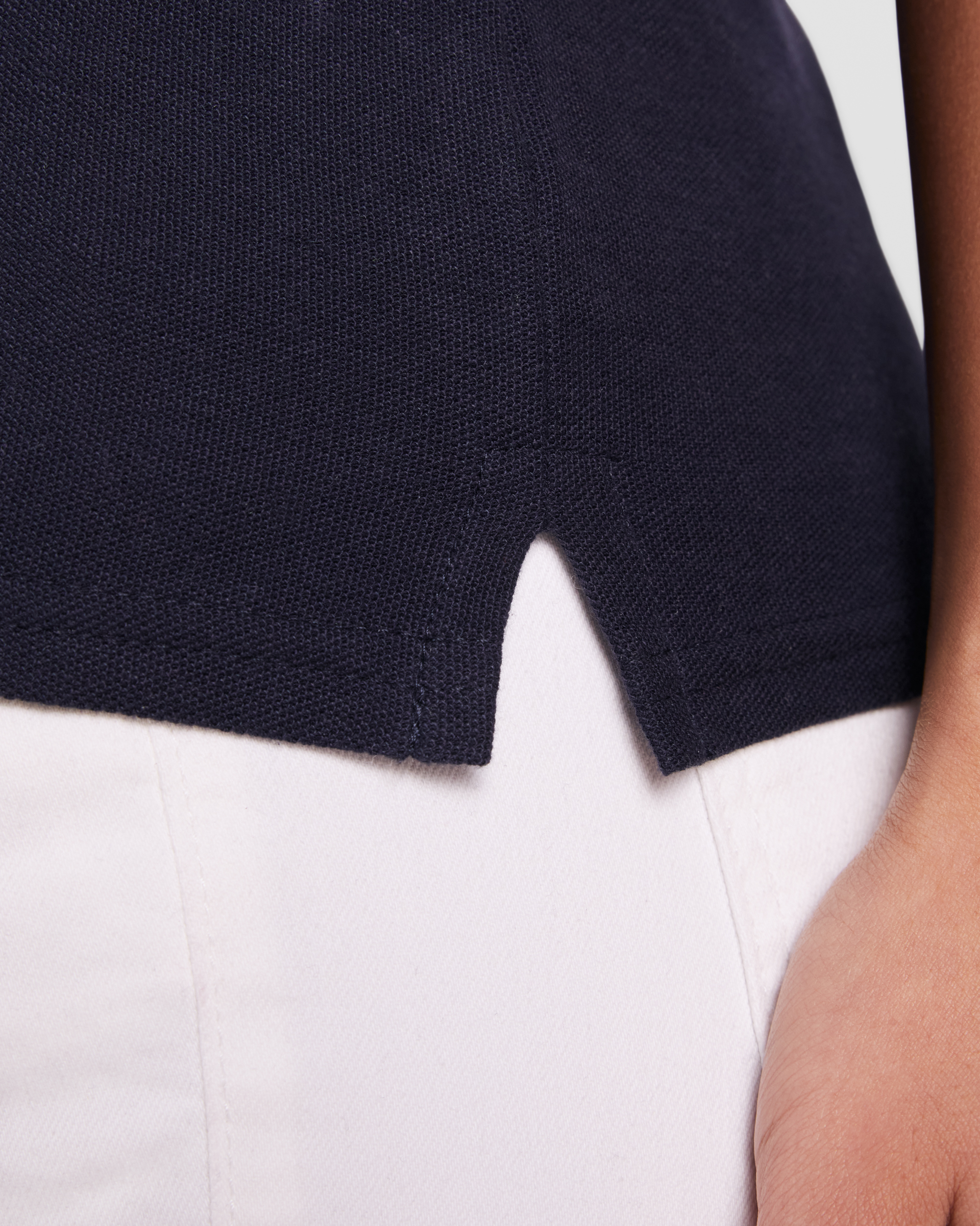 Designul atent elaborat include un guler și manșete ale mânecilor în nervuri 1x1, care conferă un aspect îngrijit și profesional. Fanta cu doi nasturi adaugă un plus de rafinament, permițându-ți să personalizezi ușor aspectul tricoului. Acoperirea întărită a cusăturilor la guler asigură durabilitate sporită, iar fantele laterale de la tiv oferă libertate de mișcare și un plus de confort în timpul purtării.