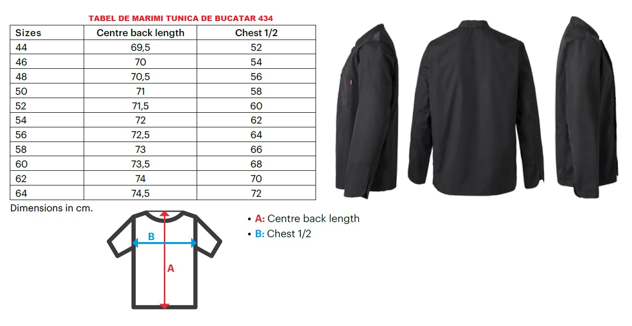 ✅ Tunica de bucatar cu maneca lunga, ideala pentru protectie si aspect profesional impecabil;