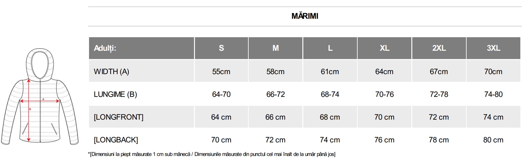 - Fermoar central acoperit cu sistem suplimentar de închidere cu arici pentru protecție optimă împotriva vântului;