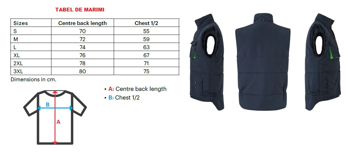 Descopera vesta de protectie matlasata 205902 Velilla, un articol vestimentar versatil si functional, ideal pentru profesionistii care activeaza in domenii precum: constructii, logistica, transport, depozitare, service auto, electricitate si mentenanta tehnica.