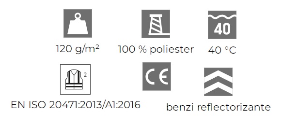 - Benzi reflectorizante: Asigură o vizibilitate excelentă în condiții de lumină scăzută, conform standardelor EN ISO 20471 (clasa 2) și EN ISO 13688.